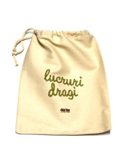 Saculet eco "lucruri dragi"Postat de: Asociatia Mai Bine Descriere produs: Săculeţi din bumbac netratat, de purtat la cumpărături sau la plimbare. Sunt rezistenţi şi încăpători, numai buni pentru încărcat cu fructe parfumate sau flori de pus la uscat peste iarnă, pentru ceaiuri, sau orice mai vrei tu. |