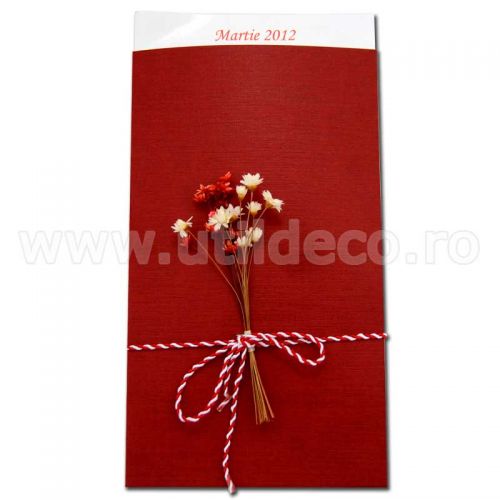 Felicitare cu floriPostat de: ADV Romania - unitatea protejata autorizata Util Deco Descriere produs: Felicitarea este realizata din carton care poate fi personalizat cu text, intr-un plic din carton special, decorat cu buchet de flori naturale, uscate si snur martisor. Pret: 5 lei |