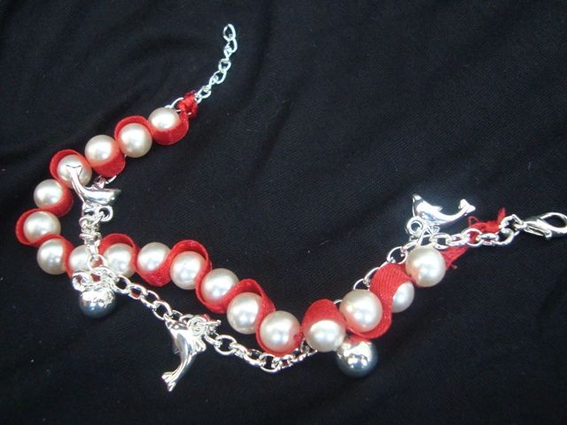 Din perlute cu pamblica din saten si lantisor. Dimensiunea este reglabila 180-200 mm