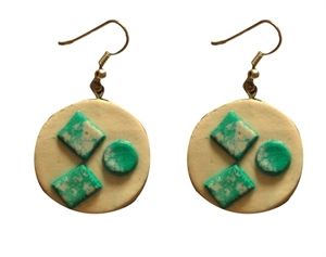 Fimo prelucrat sub forma unor cercelusi simpatici, cu forme geometrice aplicate.