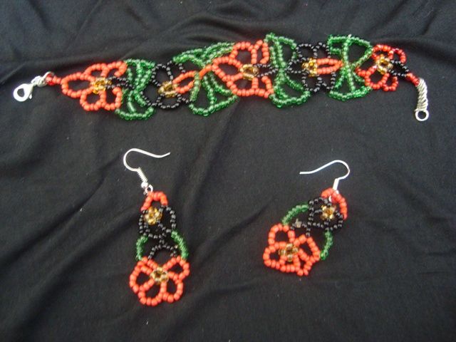 Cercei si bratara din margele de nisip. Bratara are L 190 mm
