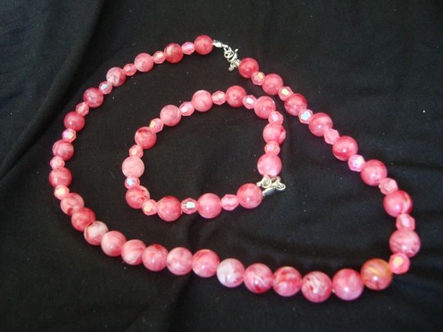 Din margele perlate. Colierul are L 380 mm, bratara are 200 mm