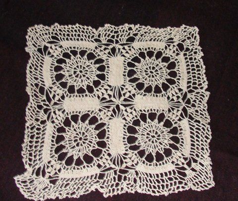 Este crosetata din macrame si poate acoperi o masuta din hol. Se doneaza pentru a ajuta doi voluntari ai asociatiei cu rechizite scolare.
