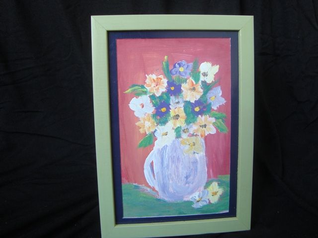 "Flori de camp" pictat in tempera pe carton, rama din plastic. Dimensiuni 100x150 mm
