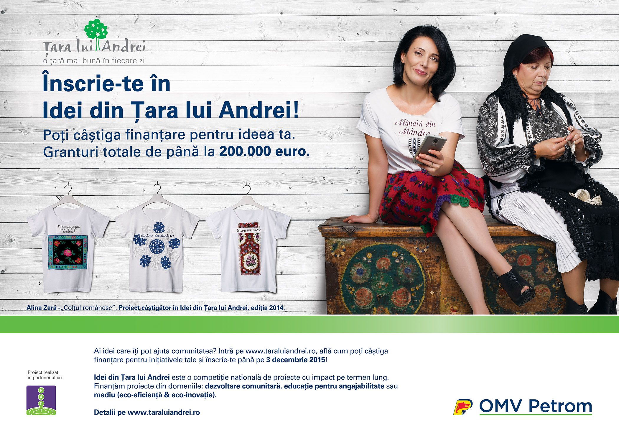 Bucuresti, 5 noiembrie 2015 - OMV Petrom si Fundatia PACT lanseaza cea de-a patra editie a competitiei nationale de proiecte "Idei din Tara lui Andrei". Aceasta sprijina romanii cu solutii din sfera dezvoltarii comunitare, educatiei pentru angajabilitate, eco-eficientei si eco-inovatiei.