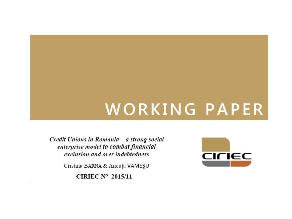 Articolul echipei IES Cristina Barna & Ancuta Vameu Credit Unions in Romania – a strong social enterprise model to combat financial exclusion and over indebtedness a fost publicat de Centrul International de Cercetare in Economia Sociala si Publica CIRIEC de pe langa Universitatea Liege in seria de working papers.
