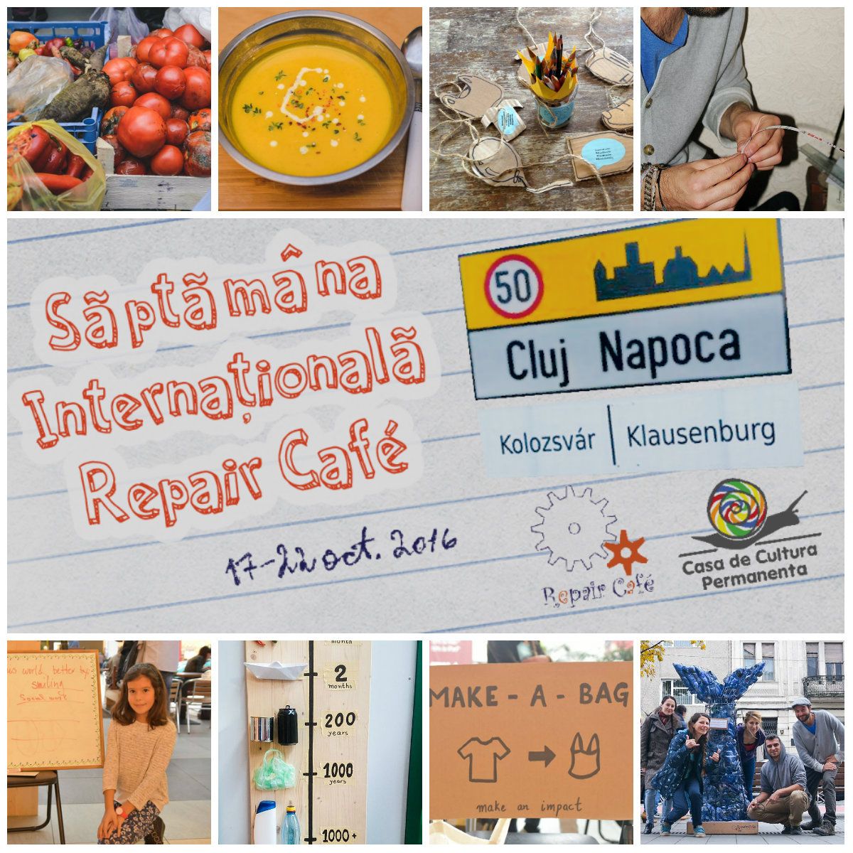 Impreuna cu o echipa de 4 voluntari internationali, la Cluj, asociatia Cercul Social, a explorat, dezbatut si aplicat, timp de o saptamana, modele si idei pentru un viitor rezilient al Clujului. 6 evenimente, peste 128 de participanti implicati activ si 4 campanii de sensibilizare in spatii publice pe tema economiei circulare sunt doar cateva dintre rezultatele Saptamanii Internationale Repair Café la Cluj (17-23 octombrie 2016).