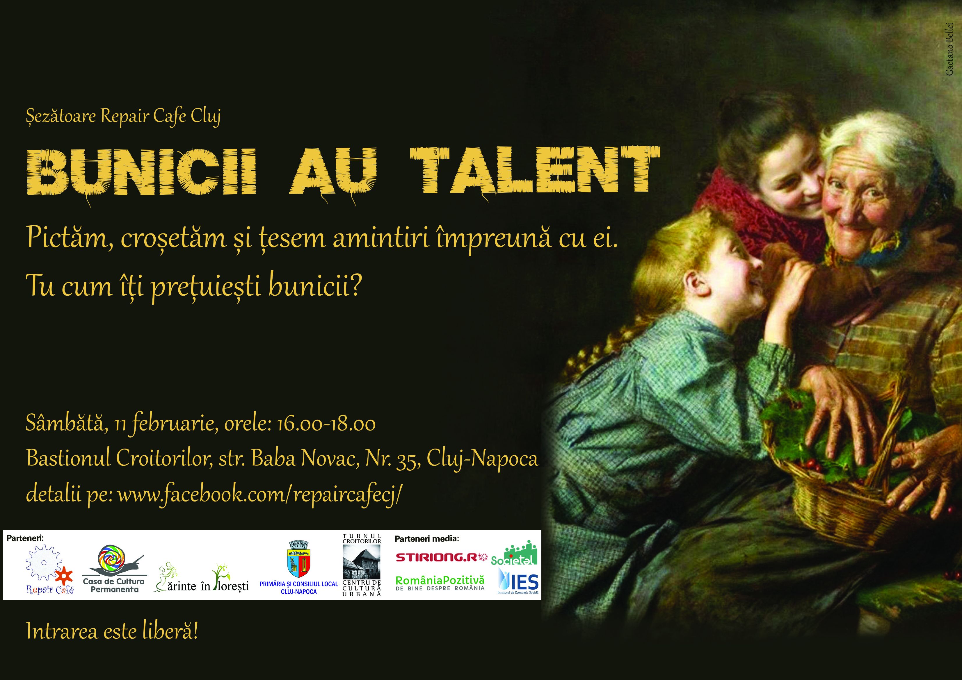 Seria evenimentelor BUNICII AU TALENT e initiata de Asociatia Cercul Social, Repair Cafe Cluj, Casa de Cultura Permanenta, in parteneriat cu Asociatia Parinte inFloresti si J'adore events.