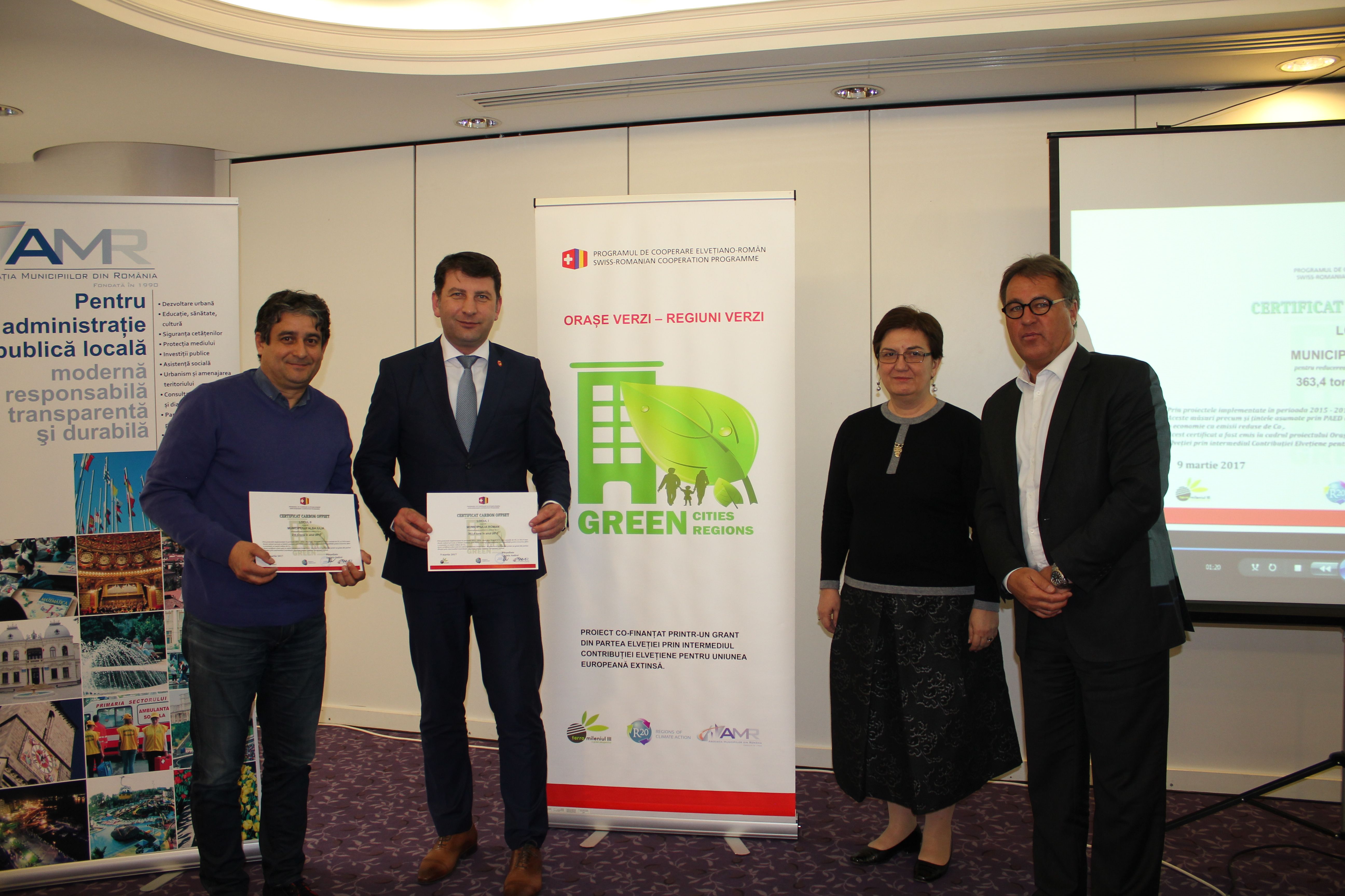 In finalul celei de-a doua zile a conferintei, Municipiul Roman, prin intermediul primarului Lucian Ovidiu Micu a fost premiat cu Certificatul Carbon Offset pentru cele 363, 4 tone de CO2 care au fost reduse prin proiectele verzi din anul 2015, acordat de catre Lavinia Andrei, managerul de proiect Orase Verzi – Regiuni Verzi. Municipiul Alba Iulia a fost si el recompensat cu locul doi pentru cele 239,6 tone CO2 reduse in anul 2015.