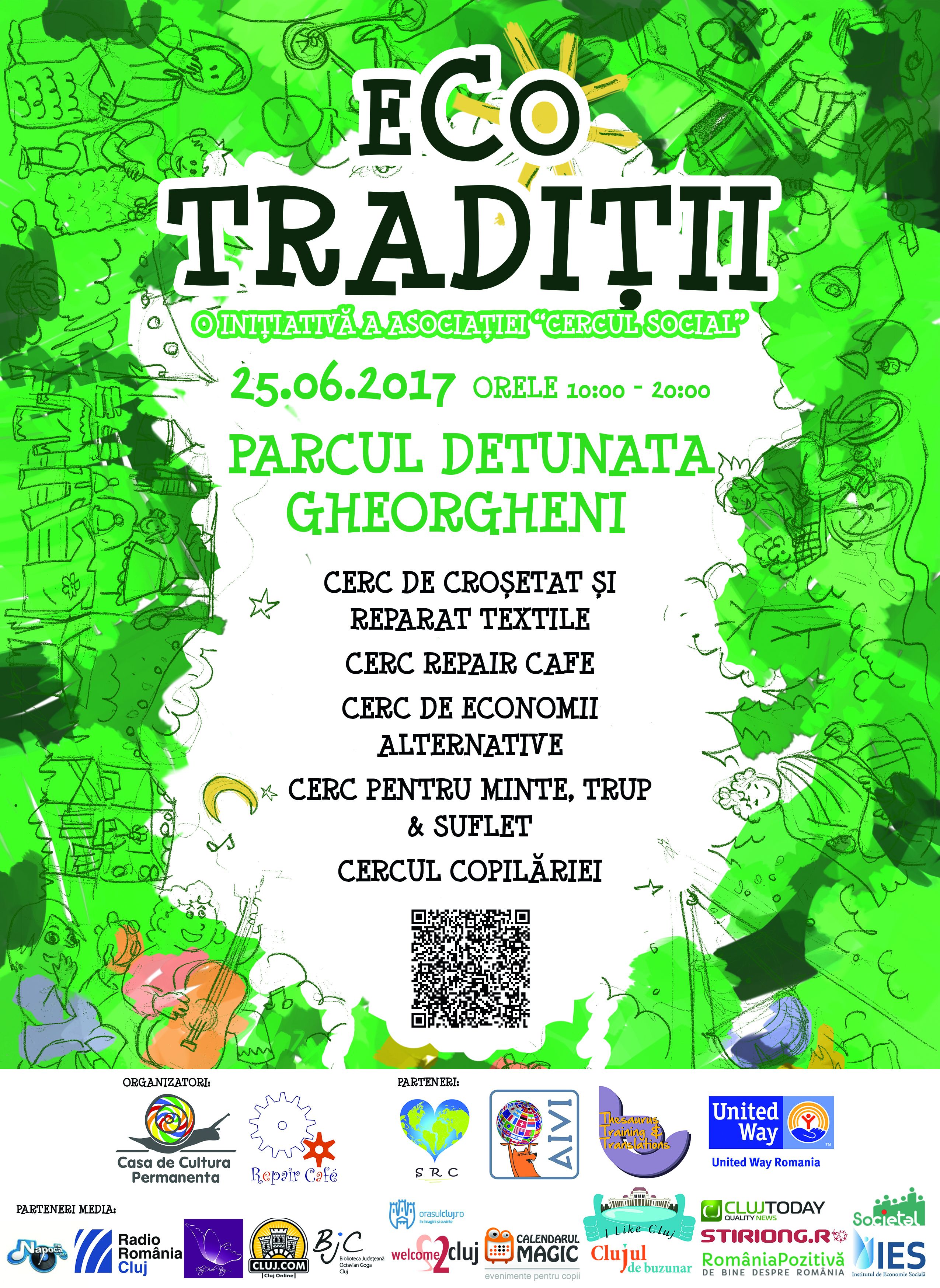 Duminica, 25 iunie festivalul EcoTraditii ajunge in Parcul Detunata din cartierul Gheorgheni! Ne dam cu cargo-bicicleta, experimentam modele economice alternative la primul Oser din Gheorgheni, crosetam, reparam biciclete, haine si obiecte electrice. Facem bratari din nasturi si ne pictam pe fata. Vindem carti pe fapte bune. Revitalizam impreuna acest spatiu urban si construim traditii ecologice si comunitare pentru un viitor sustenabil al clujenilor.