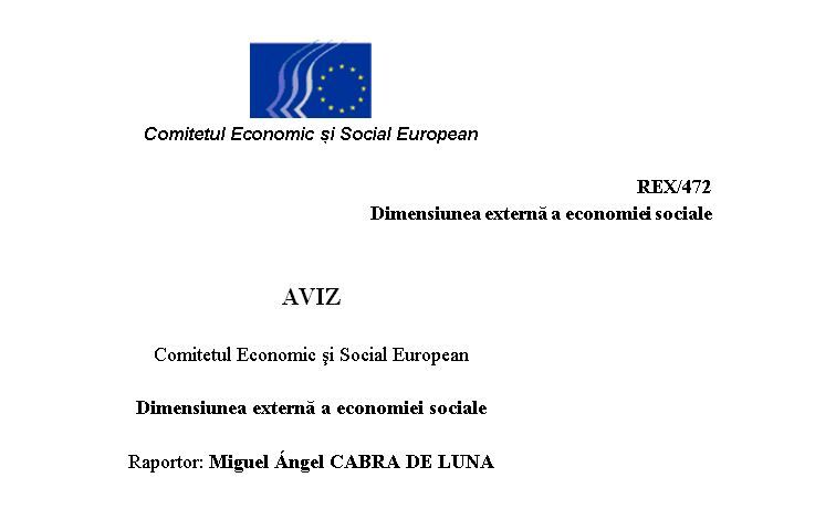 - Economia sociala este un actor-cheie si contribuie la realizarea obiectivelor tuturor politicilor europene cu o dimensiune externa: politica externa si de securitate, politica comerciala, politica de vecinatate, politica in domeniul schimbarilor climatice, cooperarea pentru dezvoltare si politica de dezvoltare durabila. Cu toate acestea, lipsa unui mediu de reglementare adecvat, atat la nivel european, cat si la nivel national, impiedica acest sector sa isi dezvolte intregul potential si sa maximizeze impactul acestuia.