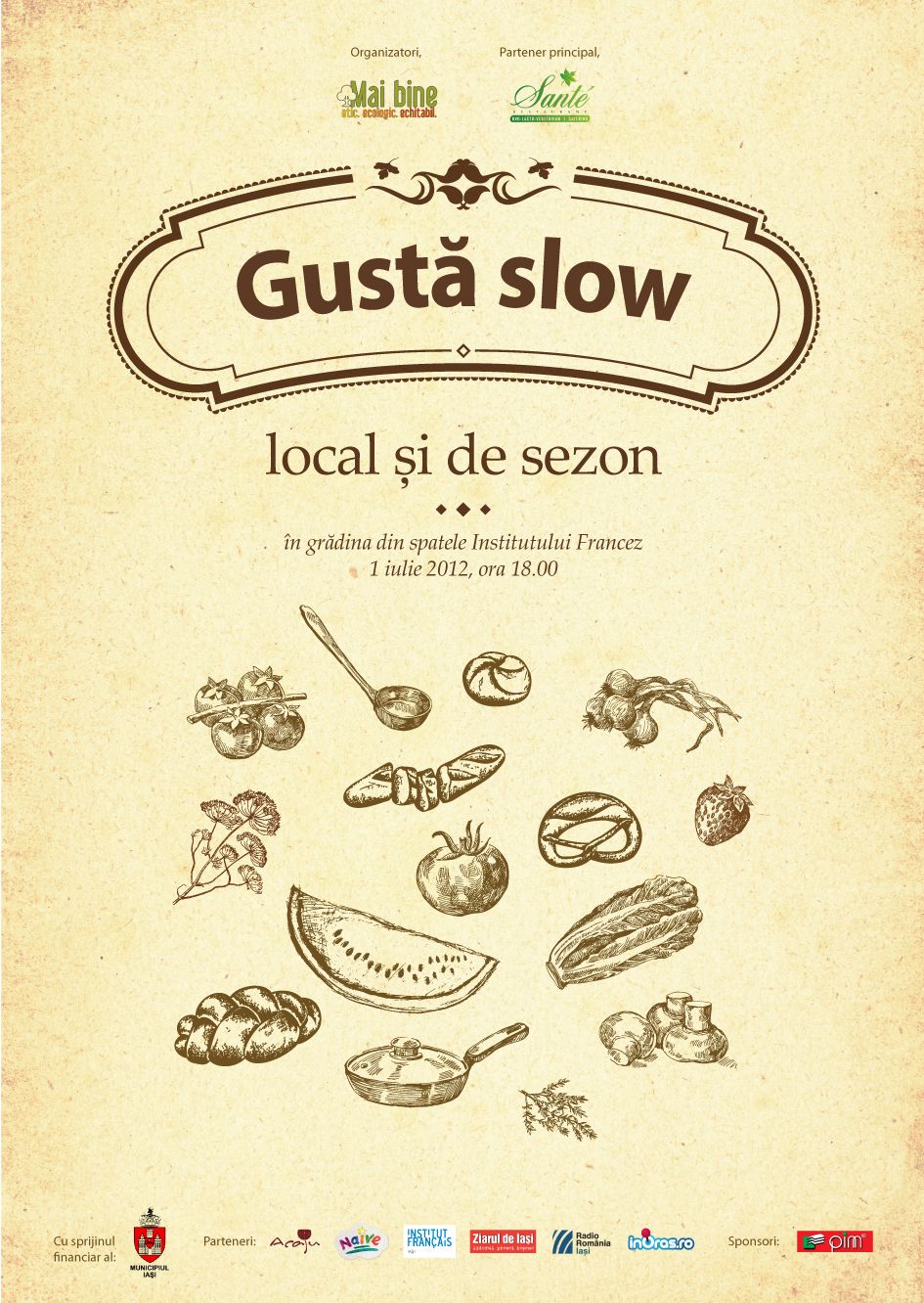 Asociatia Mai Bine pregateste o noua editie Gusta Slow, colorata in rosu de cirese, parfumuri de capsuni, pepene verde si in arome de preparate usoare, de vara. Evenimentul va avea loc pe 1 iulie, in gradina din spatele Institutului Francez din Iasi, de la ora sase seara.