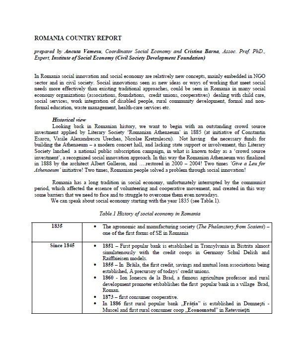 Website-ul Social Innovation Europe gazduieste raportul de tara intitulat "Inovarea sociala in Romania", material realizat de Ancuta Vamesu si Cristina Barna, specialisti ai Institutului de Economie Sociala (Fundatia pentru Dezvoltarea Societatii Civile).