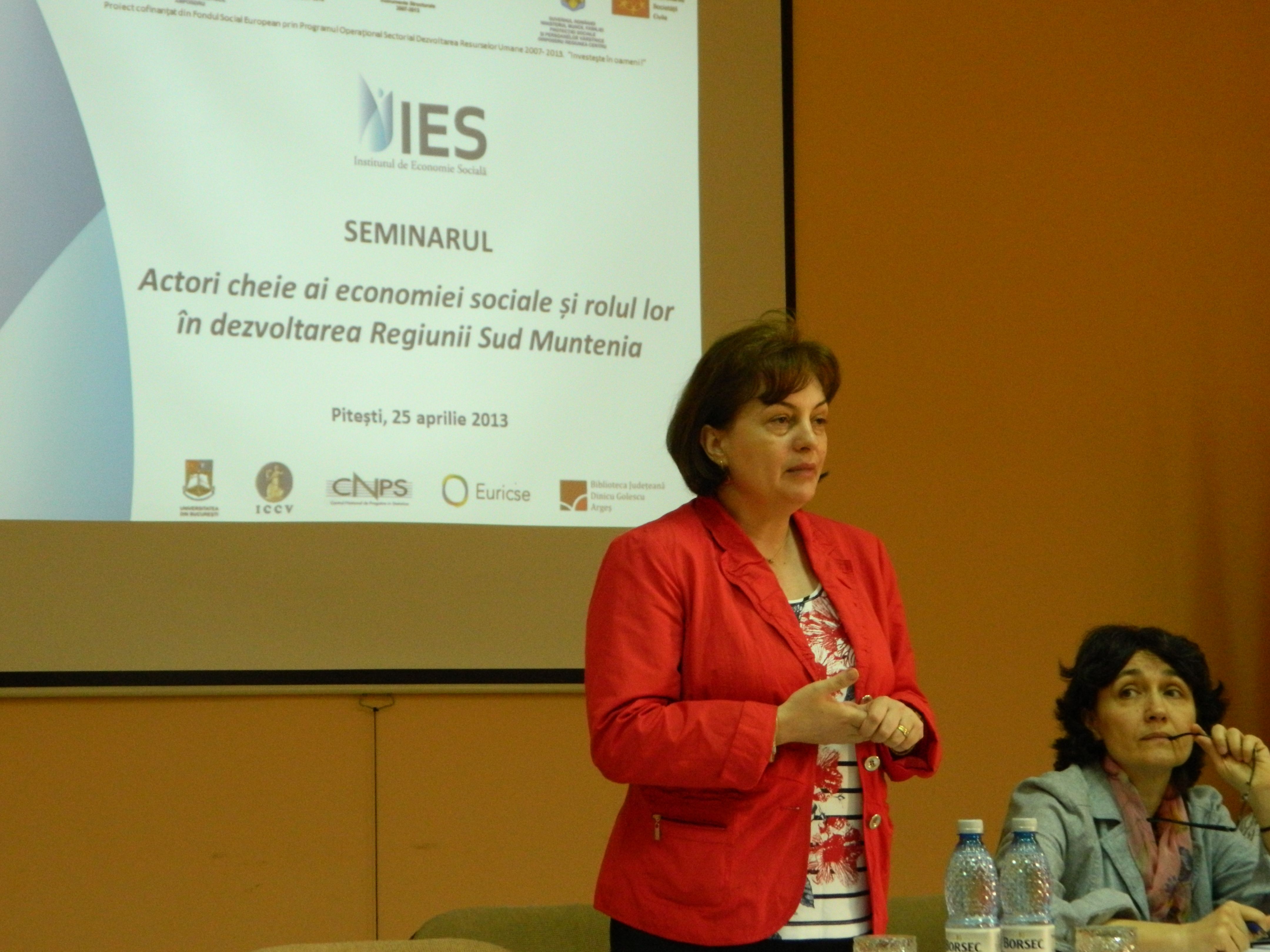 Institutul de Economie Sociala a organizat joi, 25 aprilie 2013, la Pitesti, dezbaterea regionala de economie sociala „Actori cheie ai economiei sociale si rolul lor in dezvoltarea Regiunii Sud Muntenia”.