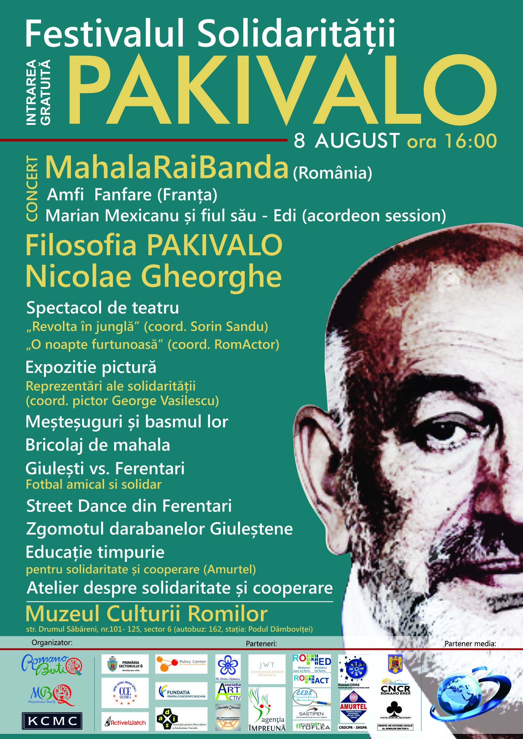 Festivalul Solidaritatii Pakivalo va avea loc pe 8 August 2014 incepand cu orele 16h00, la Muzeul Culturii Romilor, in str. Drumul Sabareni, nr.101-125, sector 6, Bucuresti. Fiecare organizatie ce contribuie la acest eveniment va pregati o activitate, printre care: o lectie de istoria Romilor, ateliere de pictura, darabane, bricolaj, mestesuguri pentru copii dar si street dance, fotografie, teatru si concerte: Marian Mexicanu, MahalaRai Banda, Amfifanfare din Franta si ansamblul Grigoras Dinicu al Centrului de Cultura al Romilor.